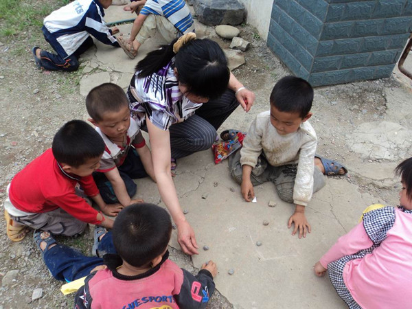 受助教师韦代柳老师带领小朋友玩游戏