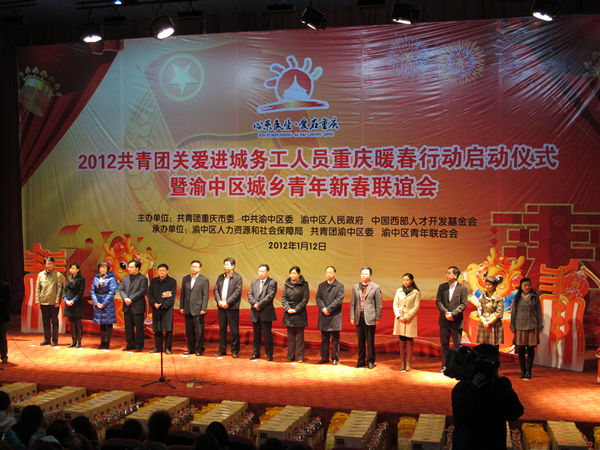 2011年度渝中区优秀进城务工青年、青联先进集体代表和先进个人分别上台接受了表彰。