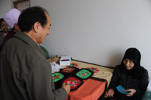 参观刺绣实验加工基地 观看刺绣学员作品