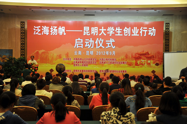 与会领导共同启动“泛海扬帆——昆明大学生创业行动”。