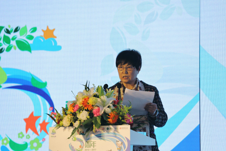 戴桂英在致辞中指出,“伊利方舟”从2012年开始启动到今天的五周年,是一个里程碑,许多人为此付出了巨大地努力。五年来通过这个平台,提升了西部地区20多万名孩子的安全意识,孩子们的自身安全得到了进一步保障。为39个县培养了儿童安全的 “伊利方舟”导航师,携手社会各界组织了70多场儿童安全教育活动。2015年该项目得到了国务院副总理刘延东同志的批示和肯定,“伊利方舟”已经成为中国社会儿童安全最鲜亮的品牌。
