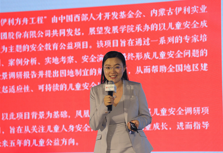 凤凰网公益主编、女童保护基金负责人孙雪梅发布了《中国儿童安全成长白皮书》。她表示,白皮书是由“伊利方舟”、凤凰网,联合全球知名调研机构尼尔森,针对儿童健康成长安全开展的调研项目。项目调研样本覆盖了来自一线、二线和三线的数十个城市,通过权威的数据,让全社会对中国儿童安全成长面临的问题有更多了解。